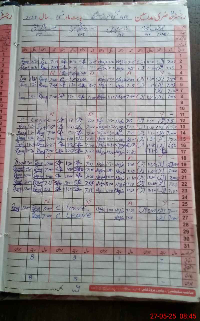 | 36**** | Sy**** Gh**** Ki**** Sh**** | PST | Regular | 0 | 0 | 0 | 0 | 0 | 0 | 0 | 0 | 0 | Casual |