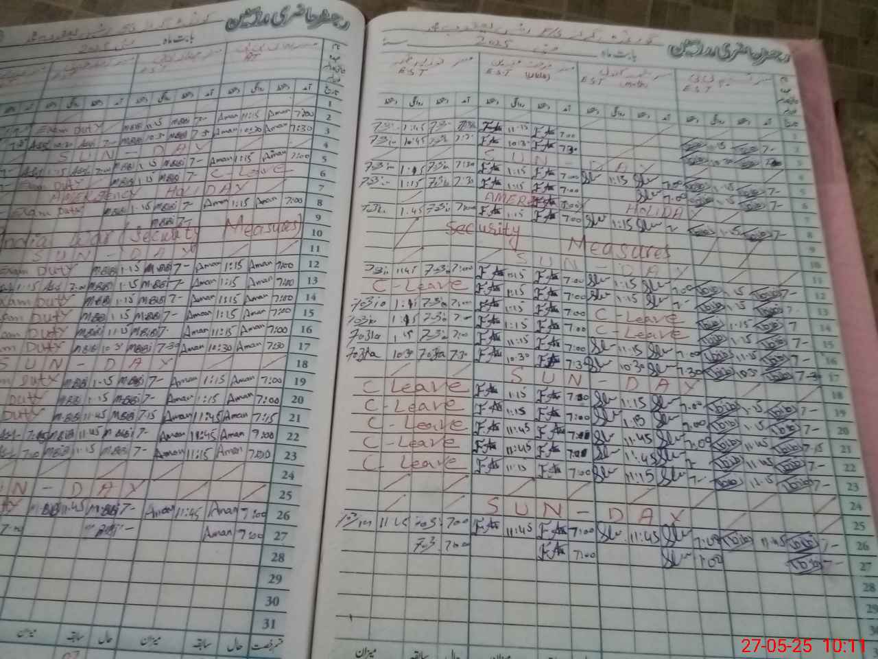 | Leave | Duty | Absent | Maternity | Medical | Ex- Pak |