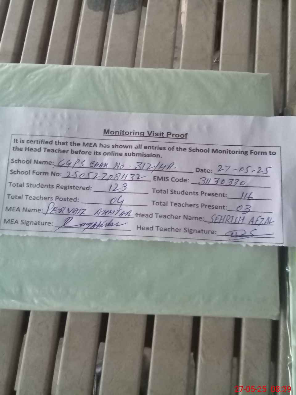 | EMIS Code: 31130330 | Name of School: GGPS CHAK NO. 312 HR | |||