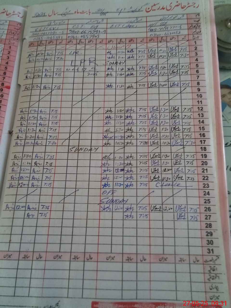| CNIC | Full Name | Designation | R/C | Absence During Last Calender Month |