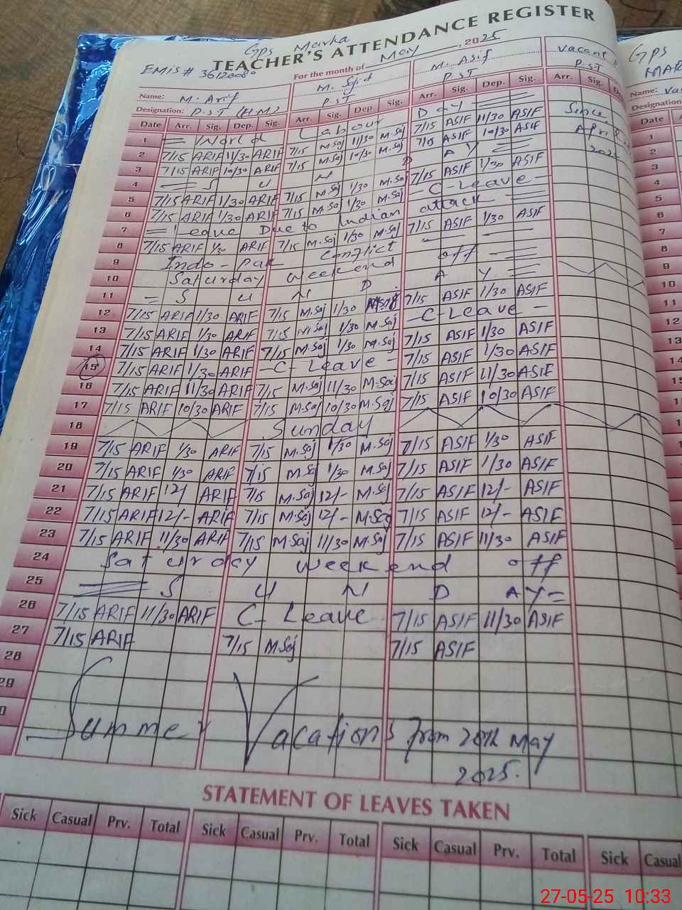 | Name: MAr**** Designation: (School Headmaster's/Headmistress's) PST Phone/Cell Number: 03**** |