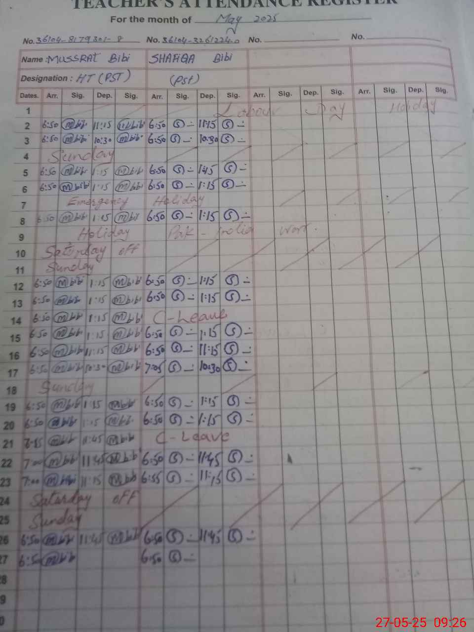 | Name: Mu**** Bi**** Designation: (School Headmaster's/Headmistress's) PST Phone/Cell Number: 03**** |