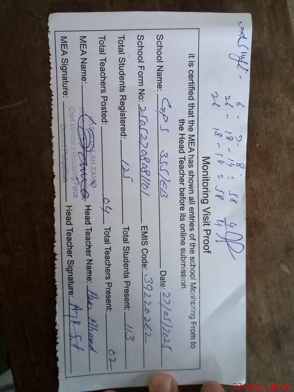 | EMIS Code: 39220262 | Name of School: GPS 355 EB P.O 351 EB | |||