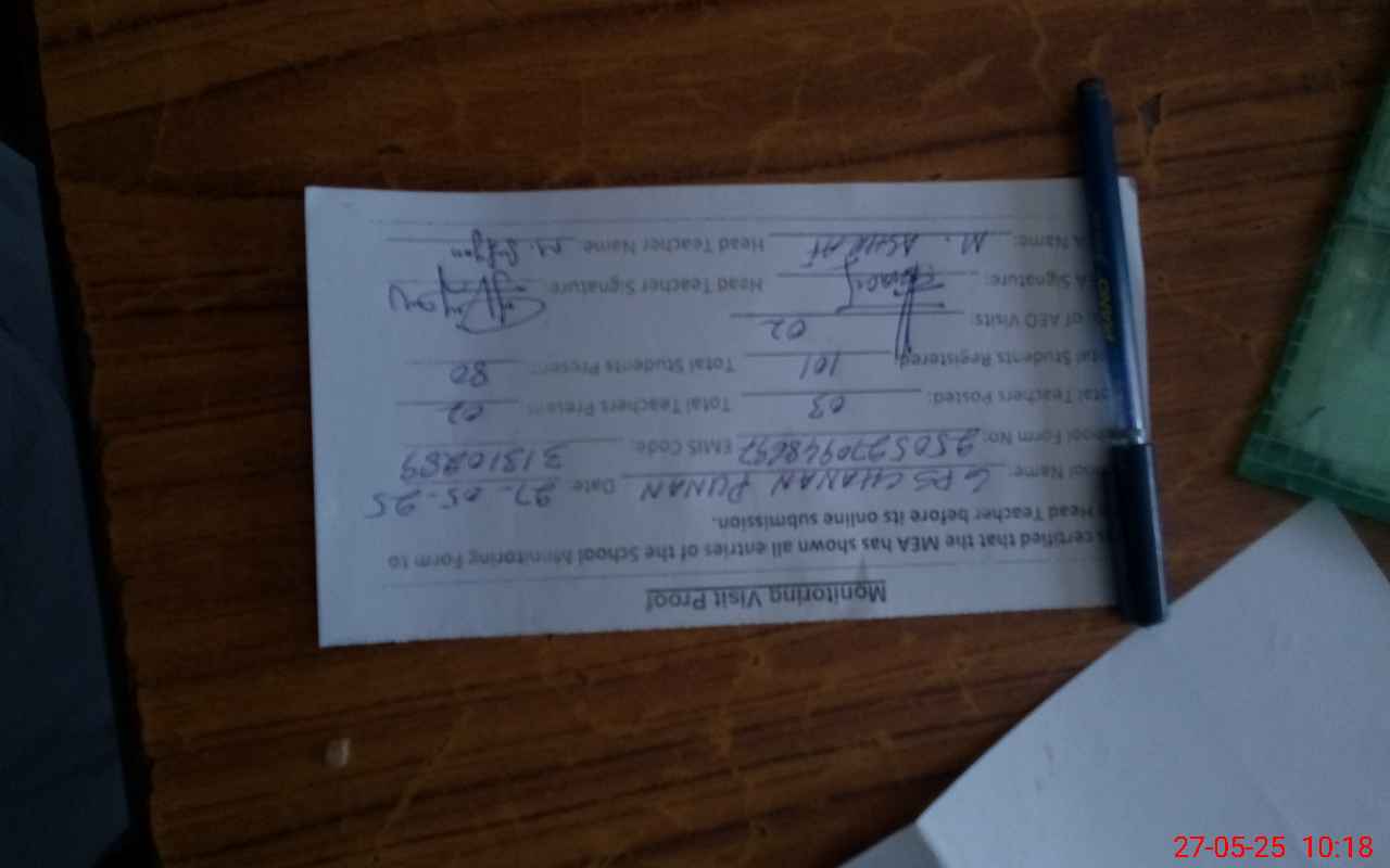 | Remarks (Use Separate Page if Required): ENROLLMENT TAKEN FROM ATTENDENCE REGISTERS OF STUDENTS ATTENDENCE OF STUDENTS CARRYOUT BY HEAD COUNT AS PER MEAS SOP | |||||