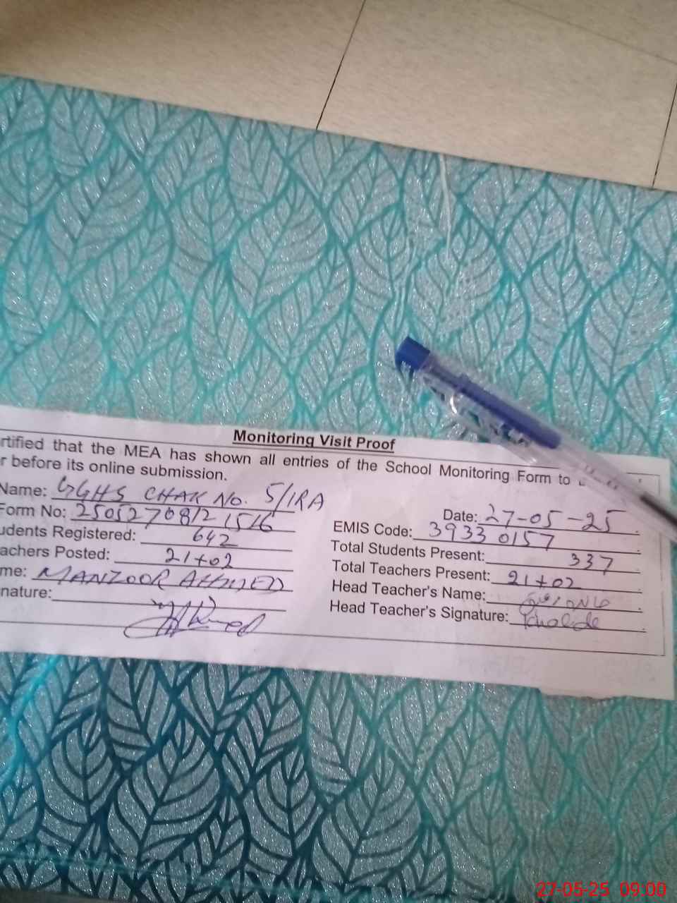 | EMIS Code: 39330157 | Name of School: GGHS CHAK NO. 5-1/RA | |||