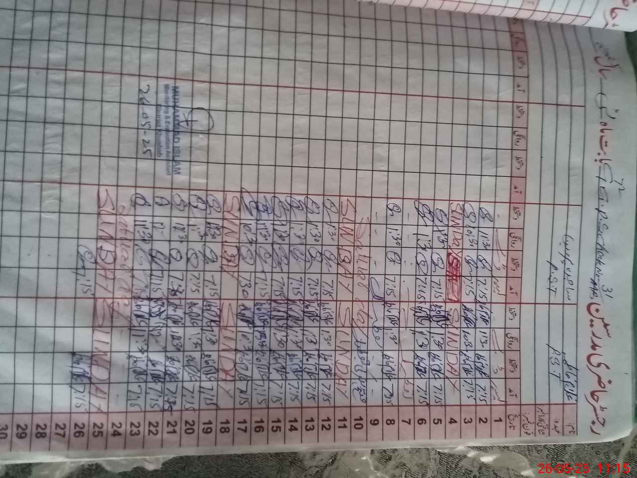 | CNIC | Full Name | Designation | R/C | Absence During Last Calender Month |