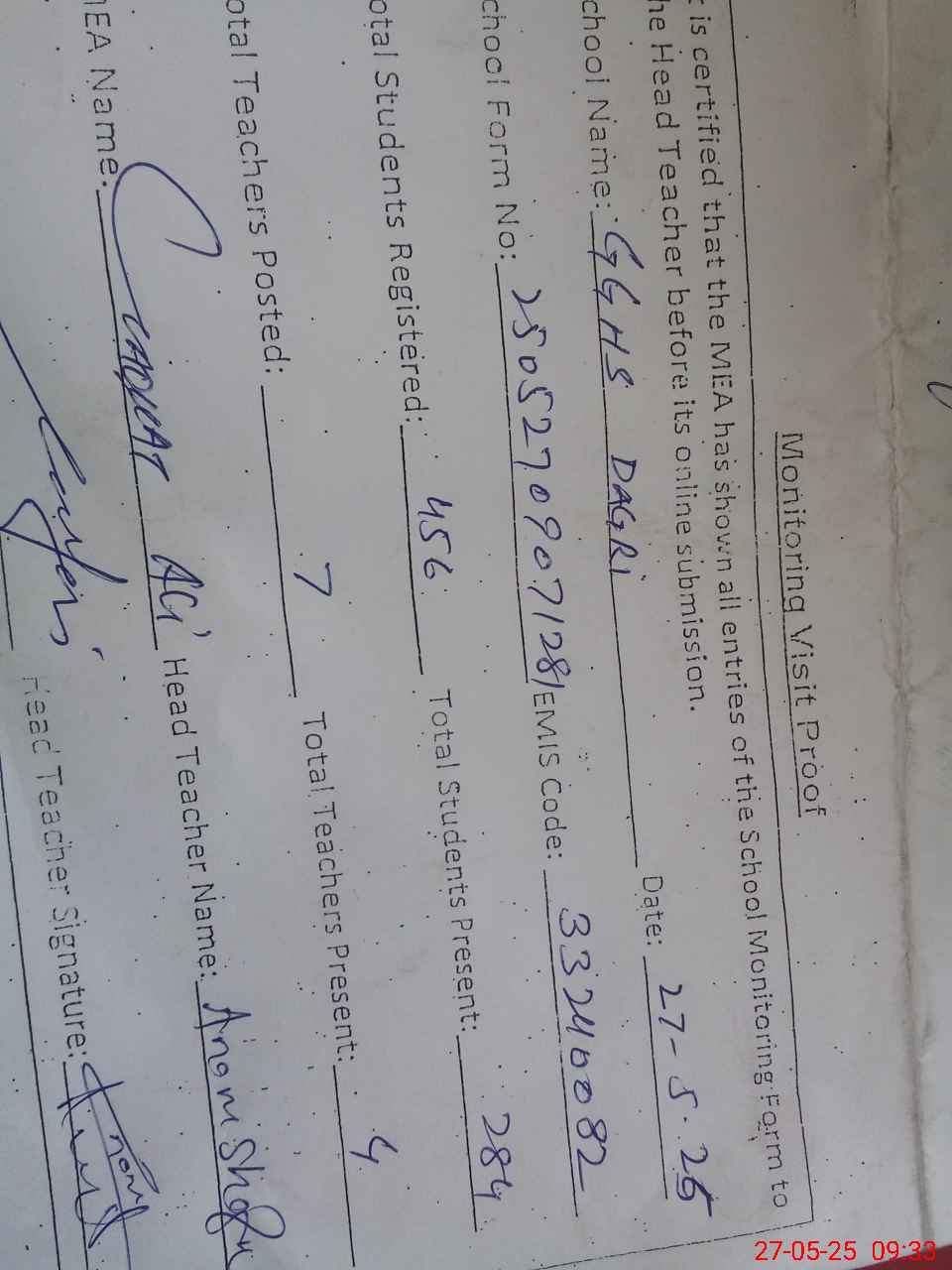 | EMIS Code: 33240082 | Name of School: GGHS DAGRI | |||
