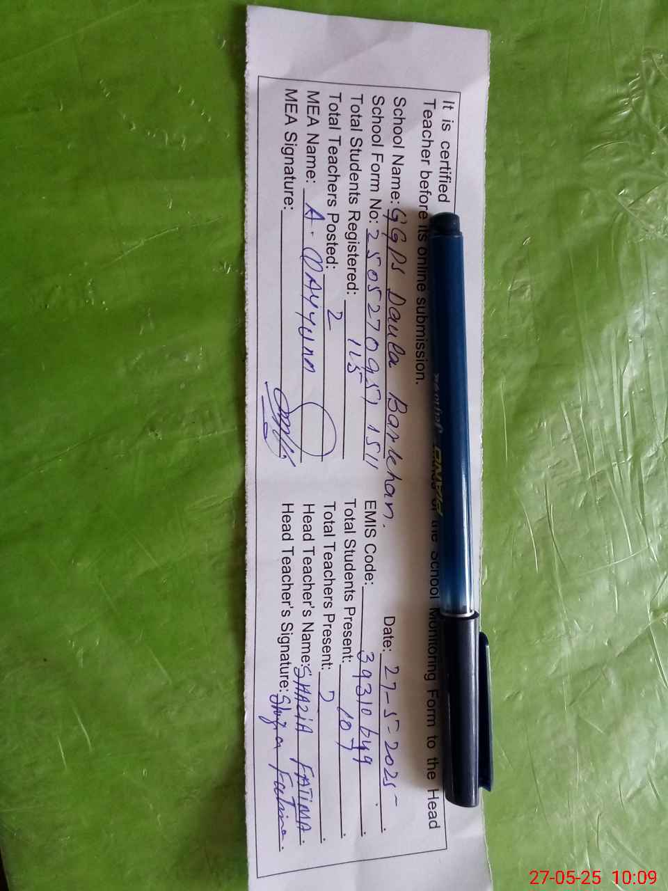 | Name: Sh**** Fa**** Designation: (School Headmaster's/Headmistress's) PST Phone/Cell Number: 03**** |