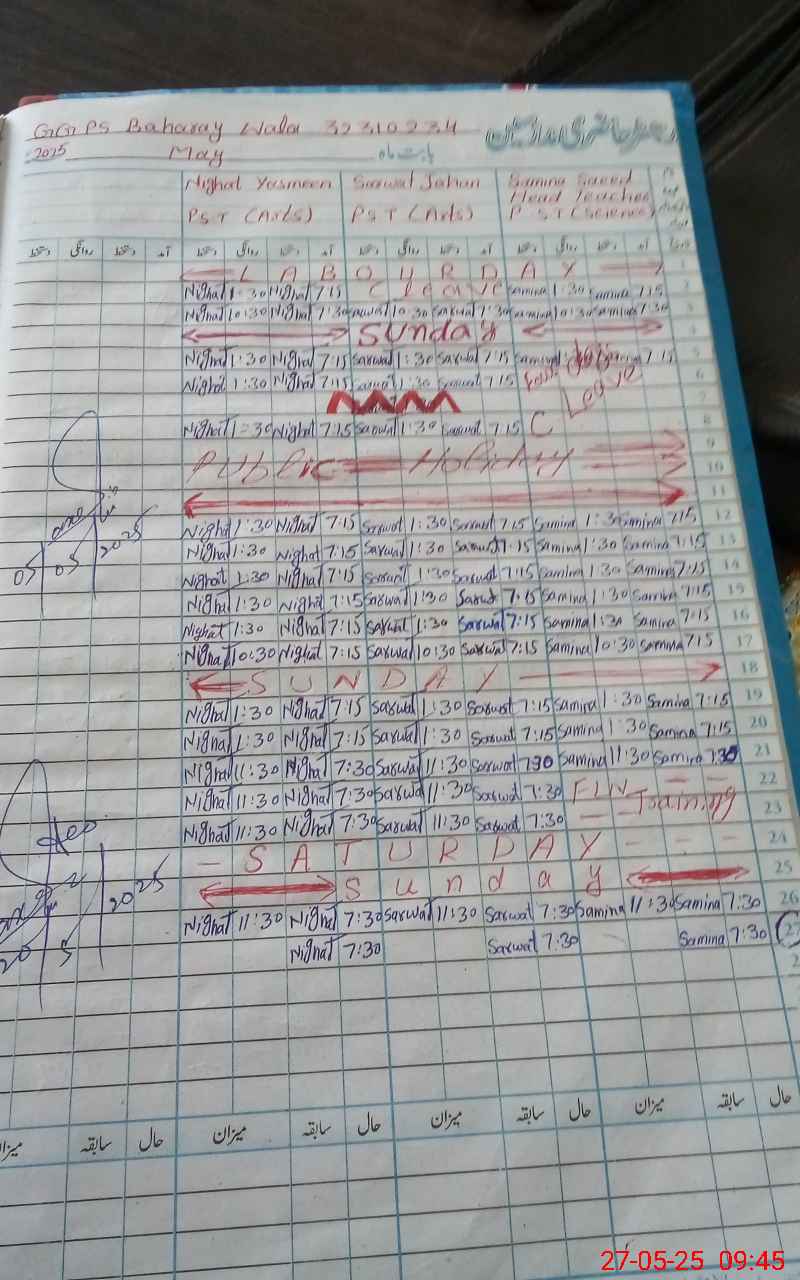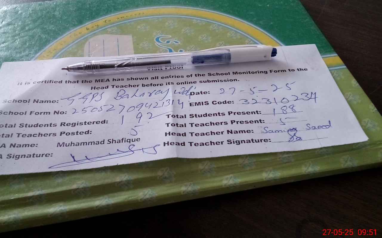 | EMIS Code: 32310234 | Name of School: GGPS BAHARAY WALA | |||