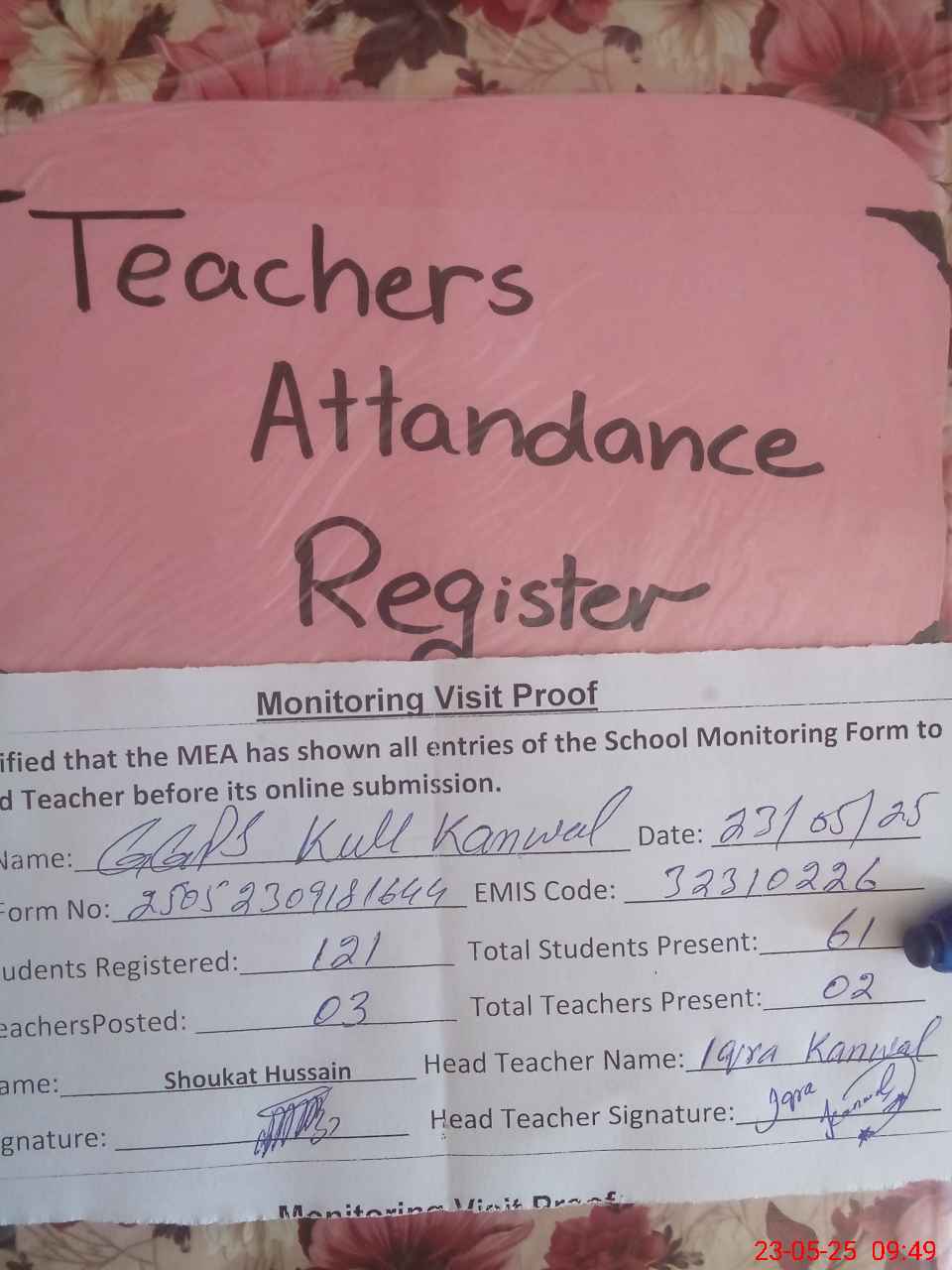 | EMIS Code: 32310226 | Name of School: GGPS KULL KANWAL | |||
