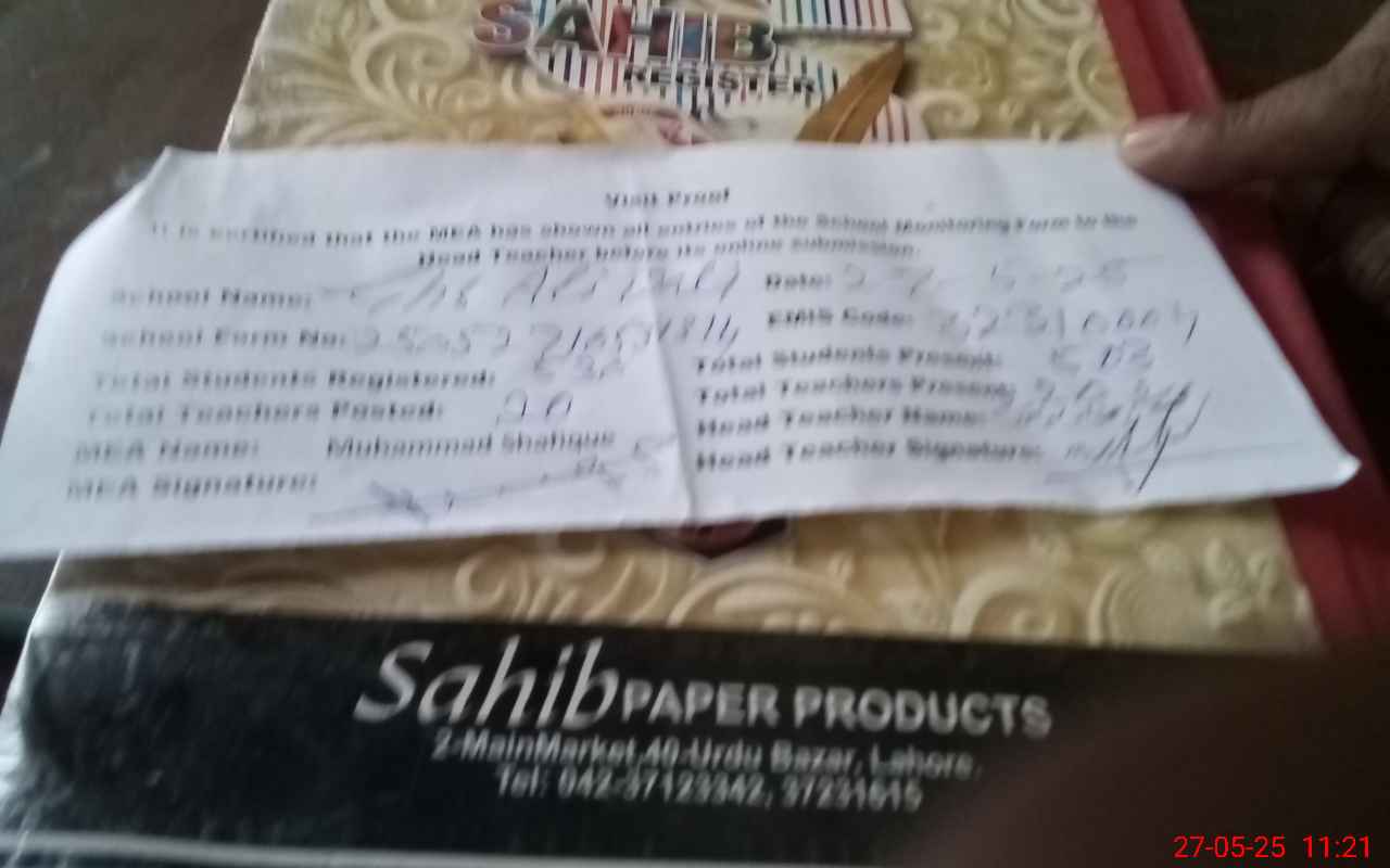 | Name: MU**** SH**** LI**** Designation: (School Headmaster's/Headmistress's) HM Phone/Cell Number: 03**** |