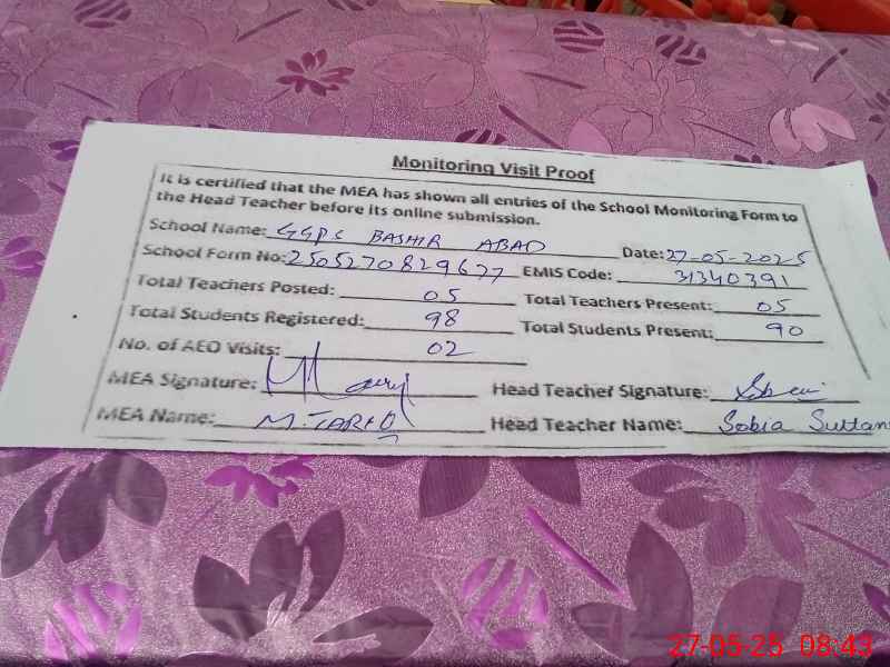 | EMIS Code: 31340391 | Name of School: GGPS BASHIR ABAD | |||