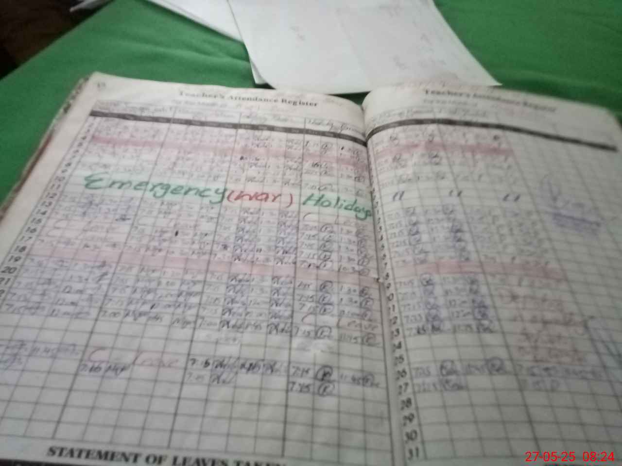 | Leave | Duty | Absent | Maternity | Medical | Ex- Pak |