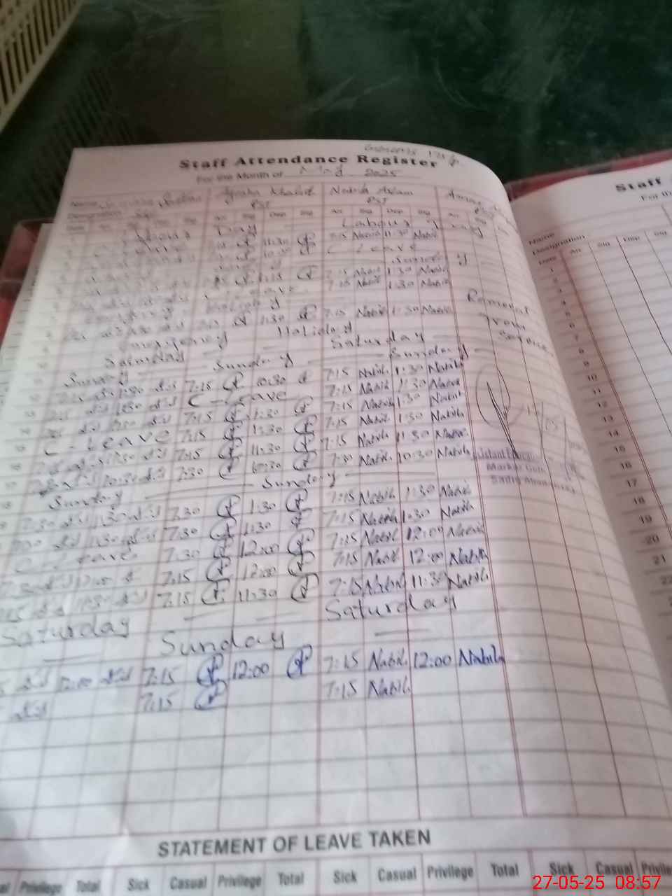 | Leave | Duty | Absent | Maternity | Medical | Ex- Pak |