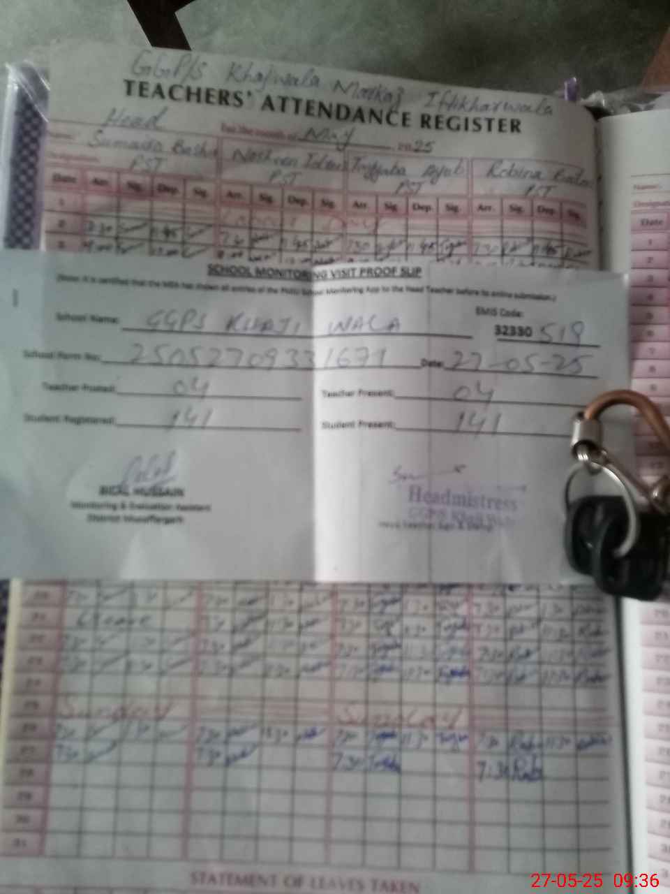 | Attendance Register | Head Teacher | MEA with School | Visit Proof |