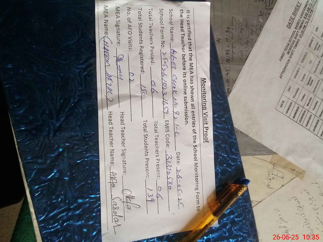 | Certified that this School was Inspected by the Undersigned MEA/DMO Today and the Information Stated Above is as Per Record. | |||||