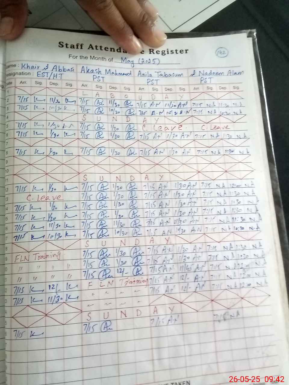 | CNIC | Full Name | Designation | R/C | Absence During Last Calender Month |