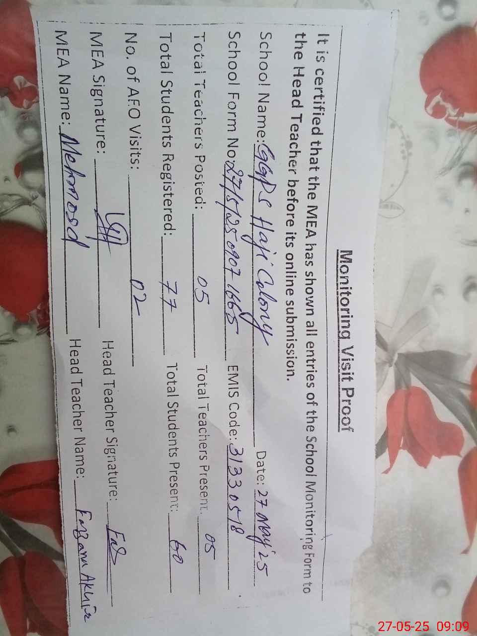 | EMIS Code: 31330518 | Name of School: GGPS HAJI COLONY | |||