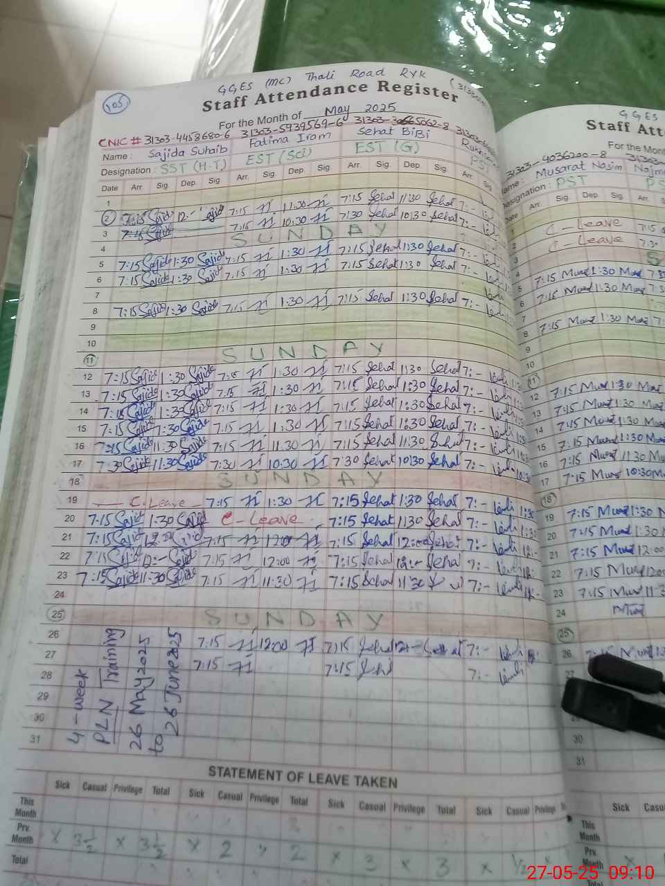 | CNIC | Full Name | Designation | R/C | Absence During Last Calender Month |