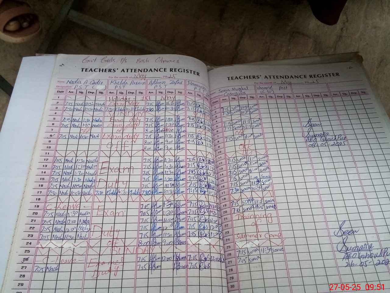 | 31**** | Kh**** Pa**** | 1 | 3 | 6 | 0 | 0 | 0 | 0 | 0 | 0 | 3 | Exam Duty | |