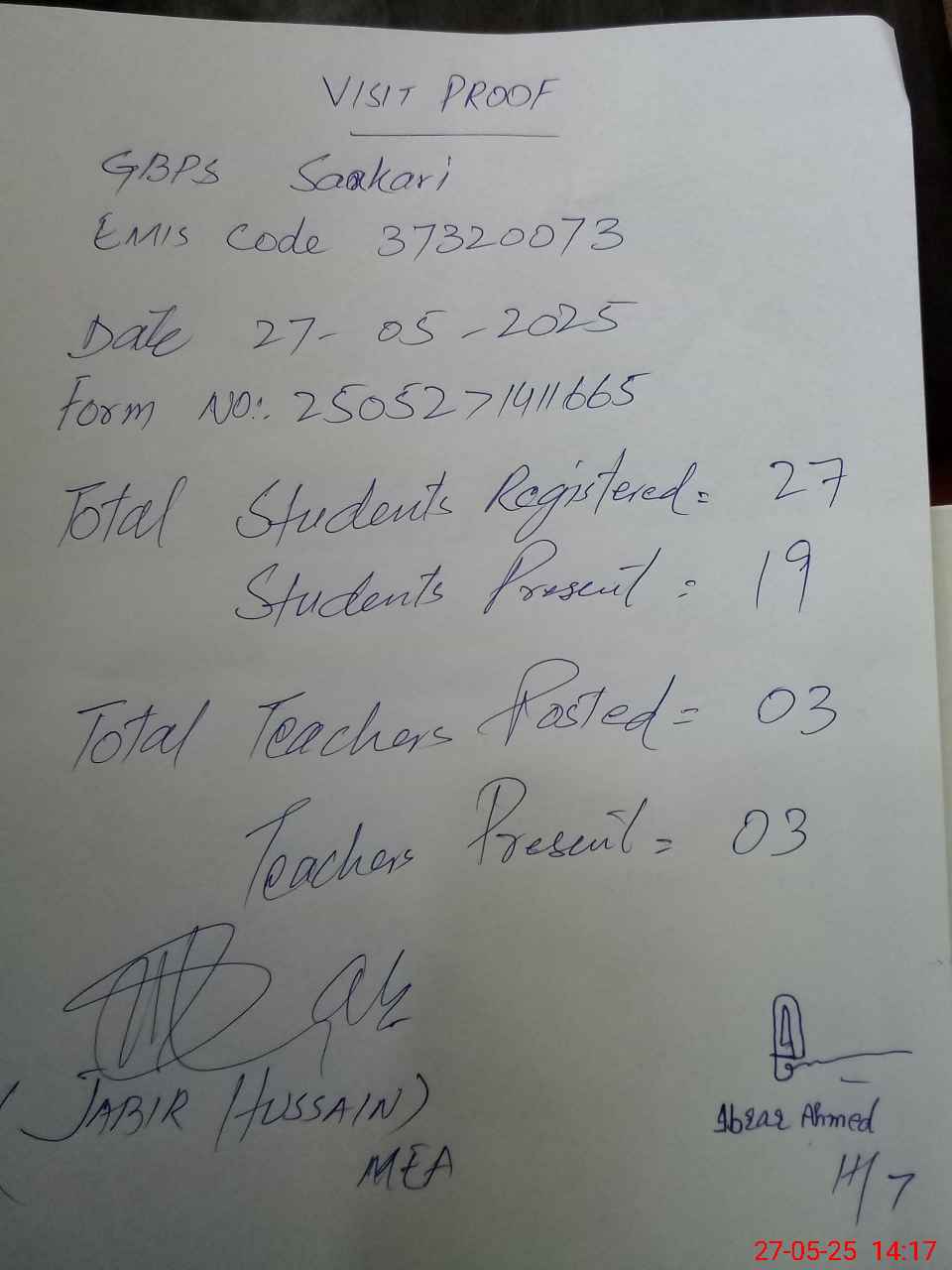 | EMIS Code: 37320073 | Name of School: GPS SAKARI | |||