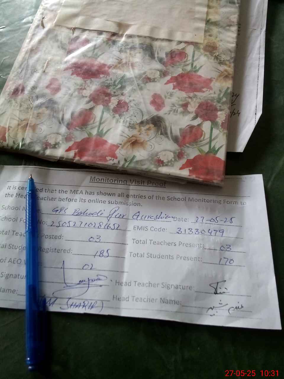 | Attendance Register | Head Teacher | MEA with School | Visit Proof |