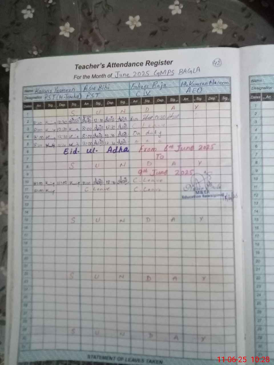 | Name: KA**** YA**** Designation: (School Headmaster's/Headmistress's) PST Phone/Cell Number: 03**** |