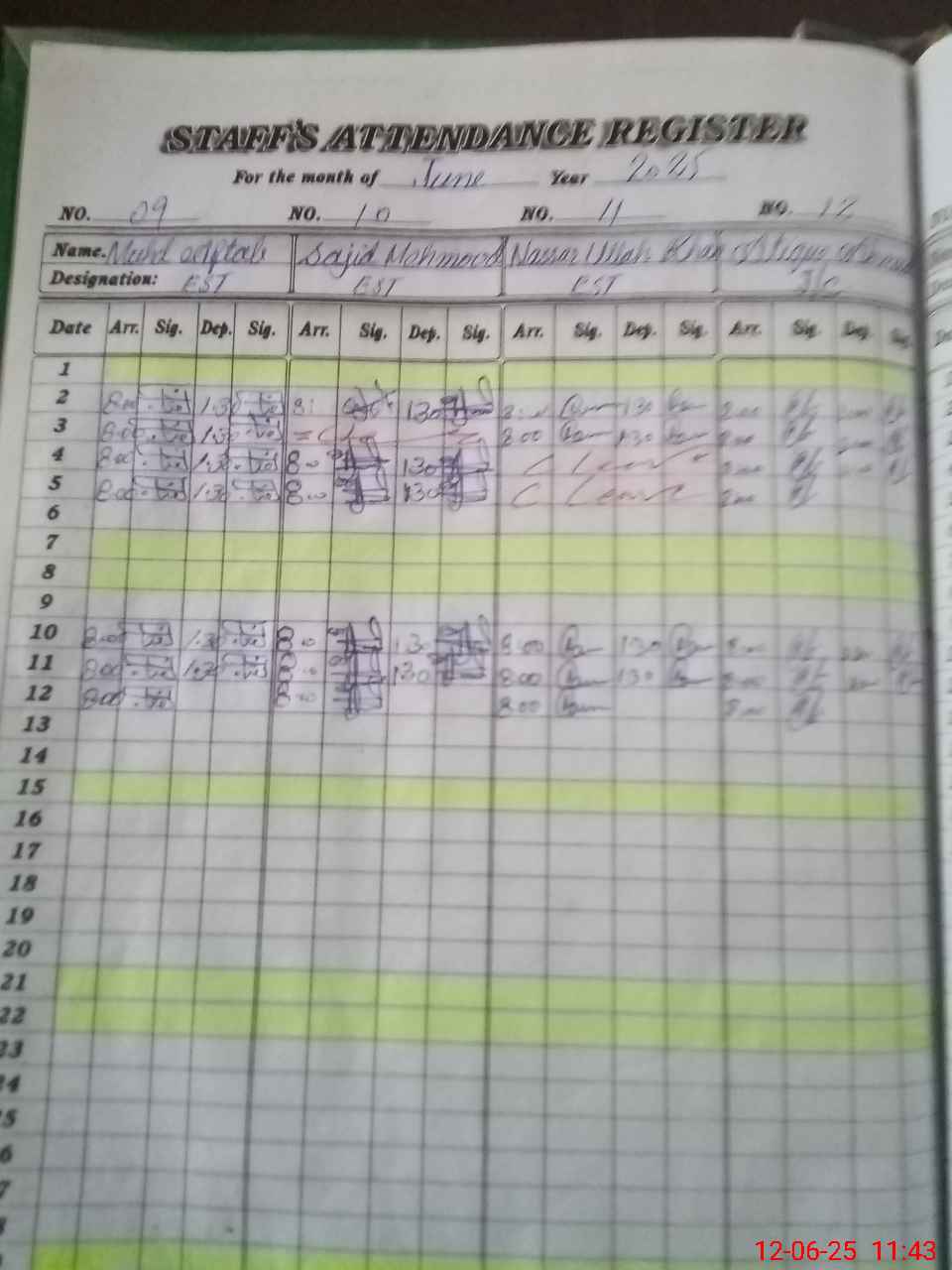 | 37**** | Sy**** Aa**** Ka**** | SST | Regular | 0 | 0 | 0 | 0 | 0 | 0 | 0 | 0 | 0 | Casual |
