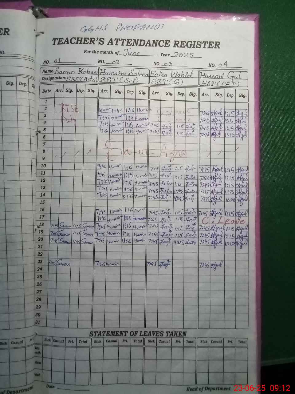| Leave | Duty | Absent | Maternity | Medical | Ex- Pak |