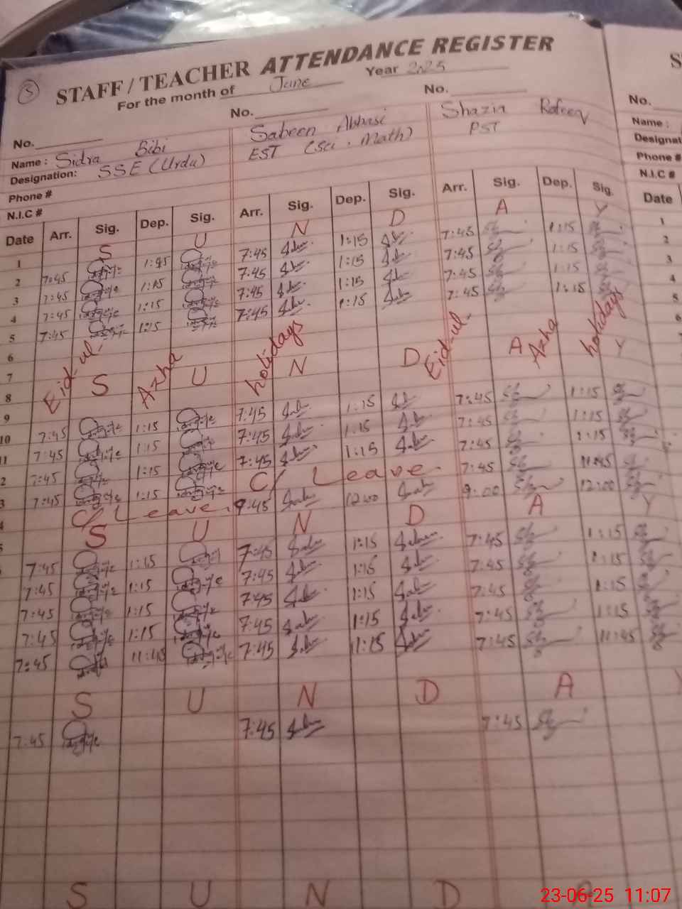 | 37**** | Na**** Hu**** | NAIB QASID | Regular | 0 | 0 | 0 | 0 | 0 | 0 | 0 | 0 | 0 | Casual |