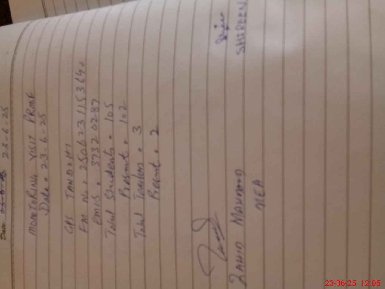 | Monitoring Date: 23-06-2025 | Start Time: 23-06-2025 11:47 AM | End Time: 23-06-2025 12:09 PM | Name of MEA: Za**** Me**** | |