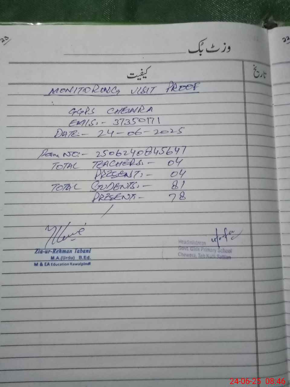 | EMIS Code: 37350171 | Name of School: GGPS CHEWRA | |||