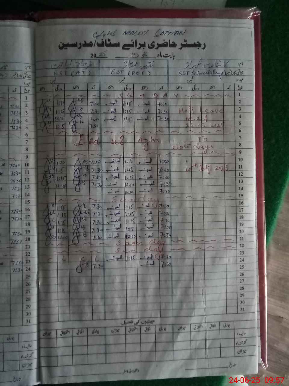 | CNIC | Full Name | Designation | R/C | Absence During Last Calender Month |