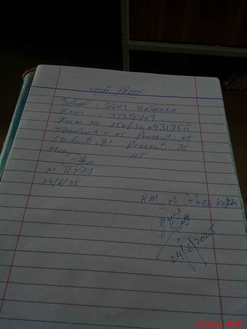 | Attendance Register | Head Teacher | MEA with School | Visit Proof |