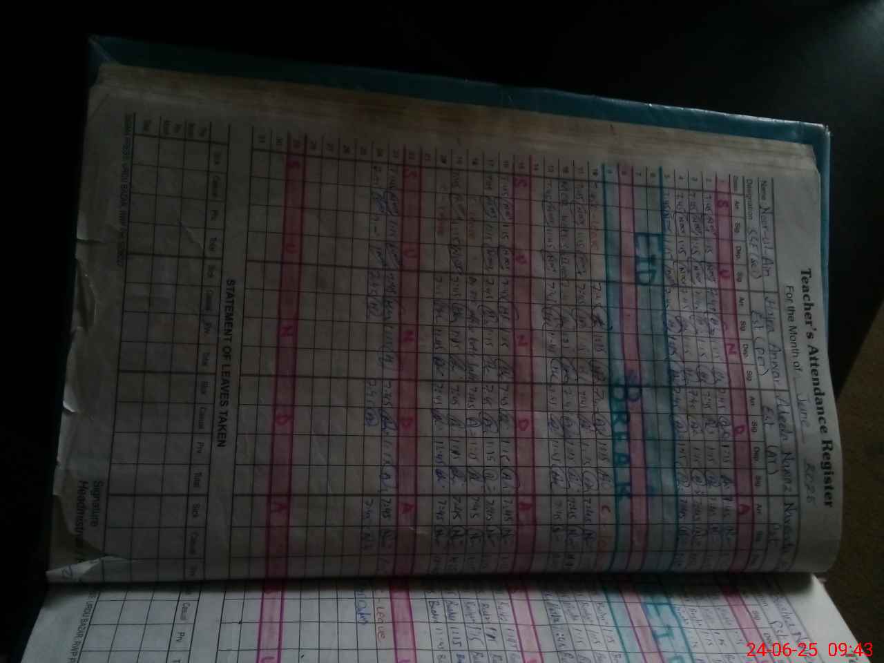 | Leave | Duty | Absent | Maternity | Medical | Ex- Pak |