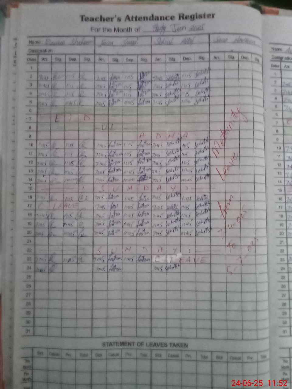 | 61**** | Sa**** No**** | PST | Regular | 0 | 0 | 0 | 0 | 0 | 0 | 0 | 0 | 0 | Maternity |
