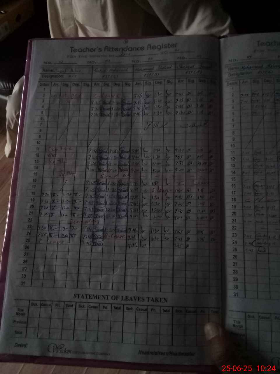 | Leave | Duty | Absent | Maternity | Medical | Ex- Pak |