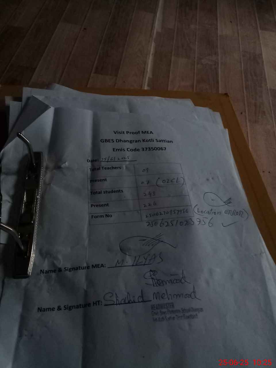 | Attendance Register | Head Teacher | MEA with School | Visit Proof |