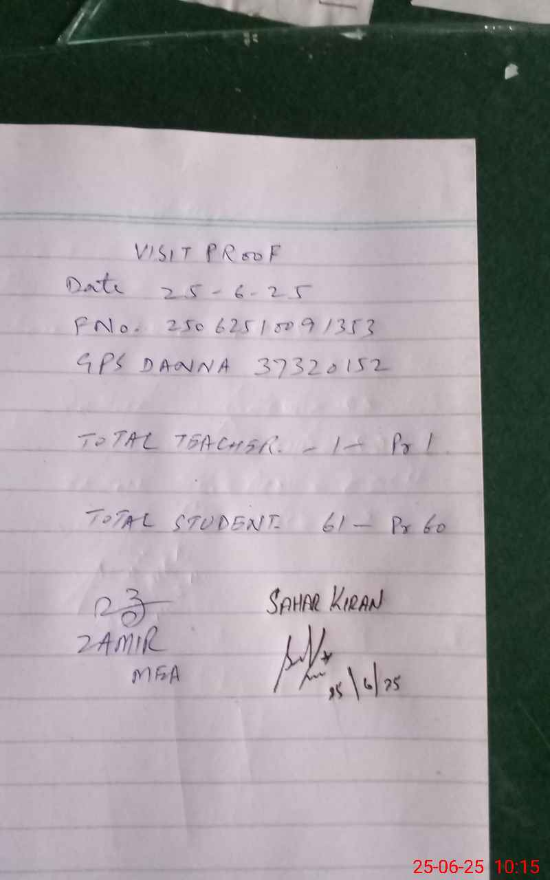 | Monitoring Date: 25-06-2025 | Start Time: 25-06-2025 09:59 AM | End Time: 25-06-2025 10:15 AM | Name of MEA: Za**** Ah**** | |