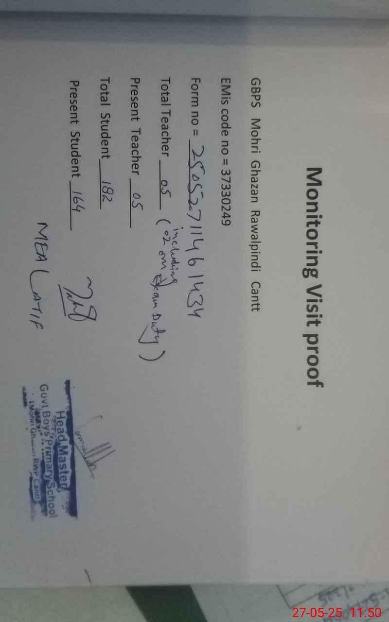 | EMIS Code: 37330249 | Name of School: GPS MOHRI GHAZAN | |||