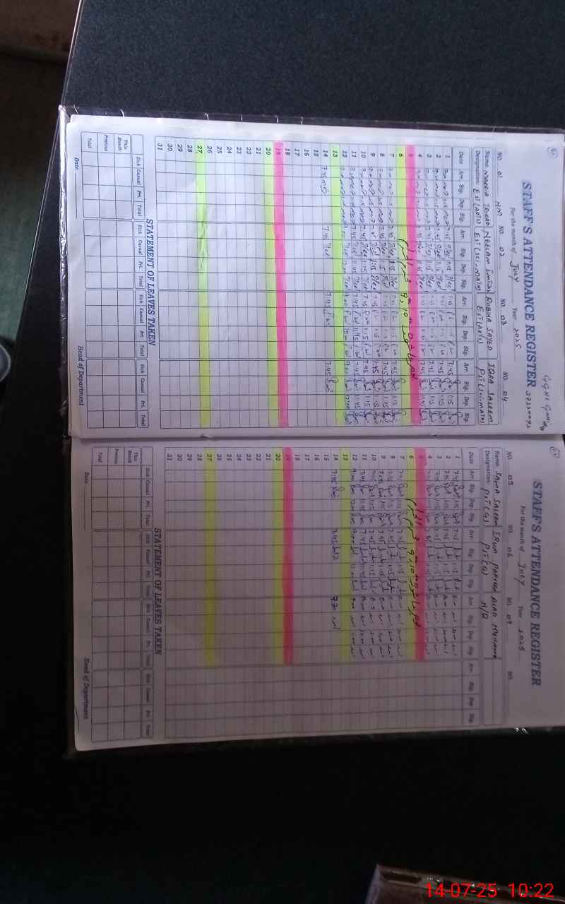 | CNIC | Full Name | Designation | R/C | Absence During Last Calender Month |