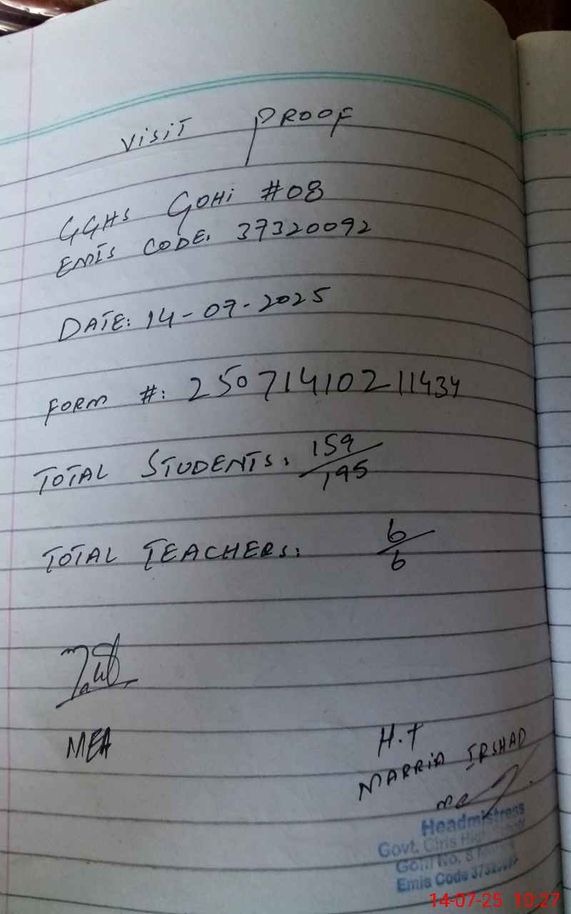 | EMIS Code: 37320092 | Name of School: GGHS GHOI NO. 8 | |||