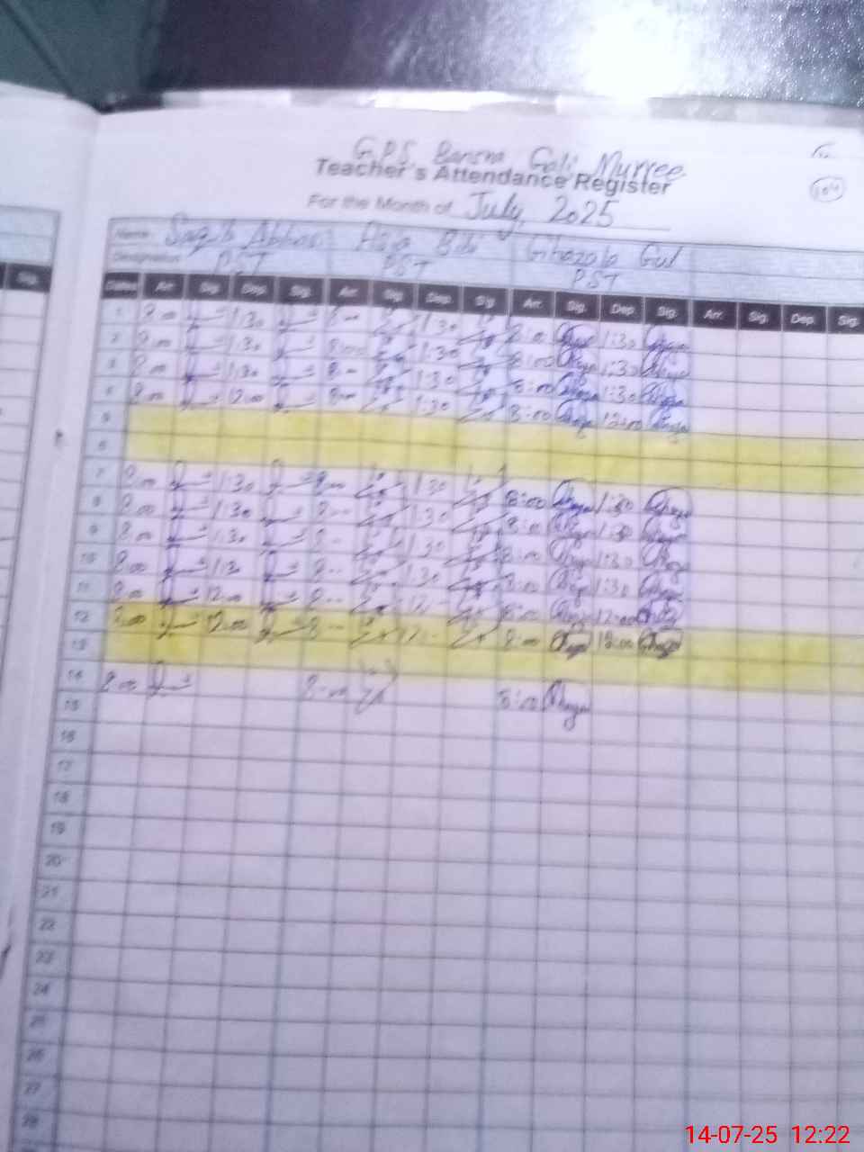 | Name: SA**** AB**** Designation: (School Headmaster's/Headmistress's) PST Phone/Cell Number: 03**** |