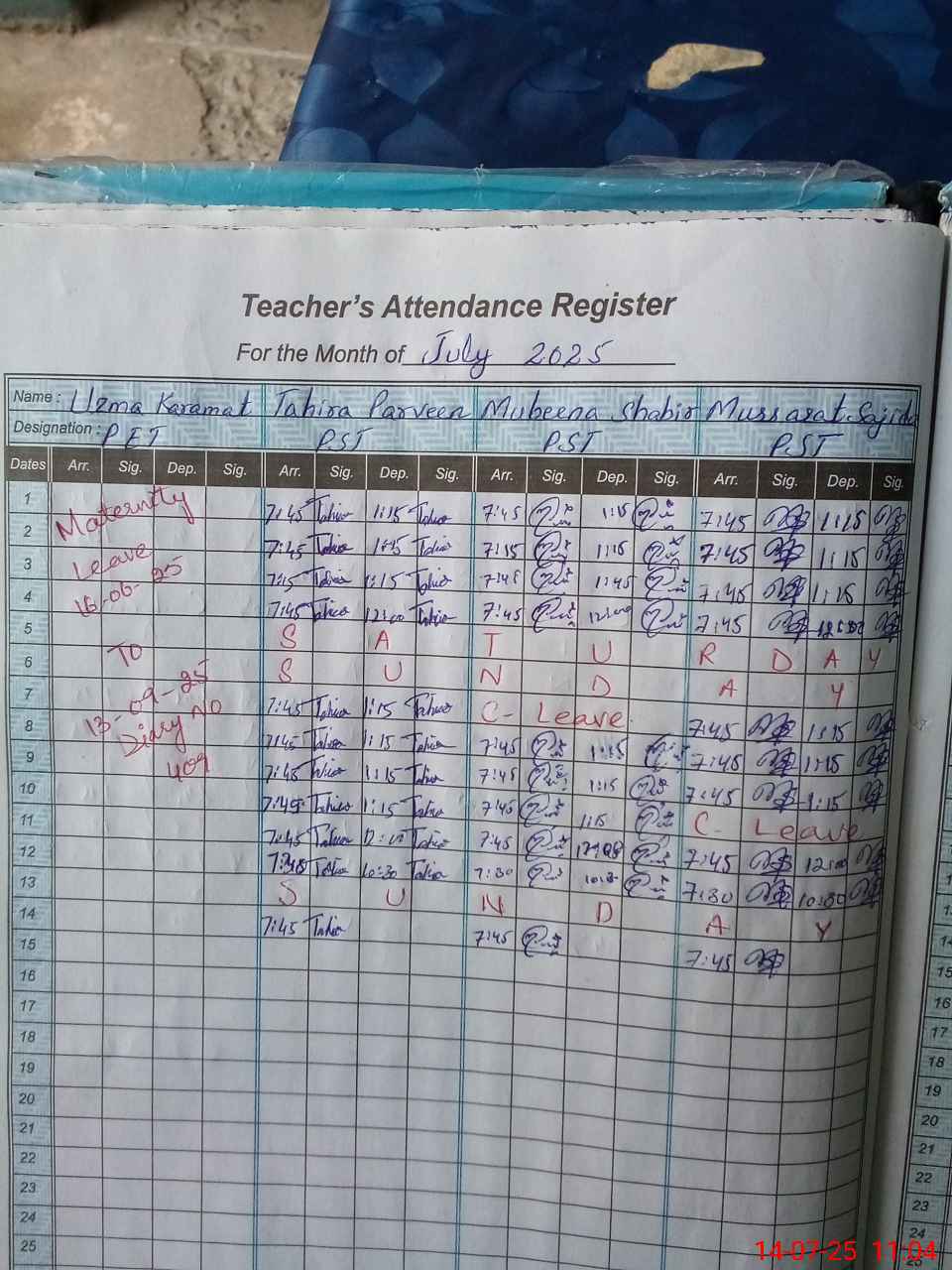 | 38**** | Uz**** Ka**** | EST | Regular | 0 | 0 | 0 | 0 | 0 | 0 | 0 | 0 | 0 | Maternity |