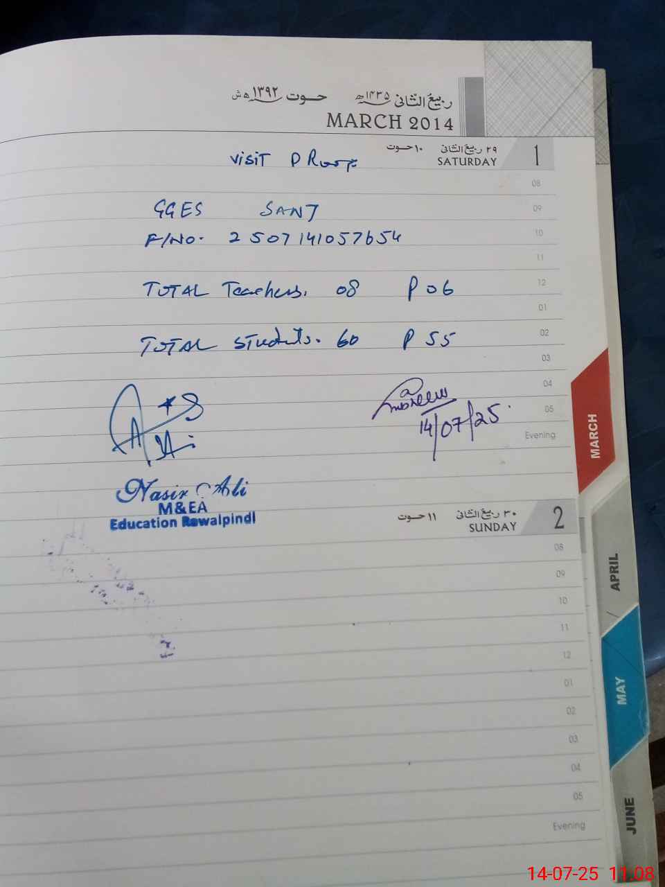 | Attendance Register | Head Teacher | MEA with School | Visit Proof |