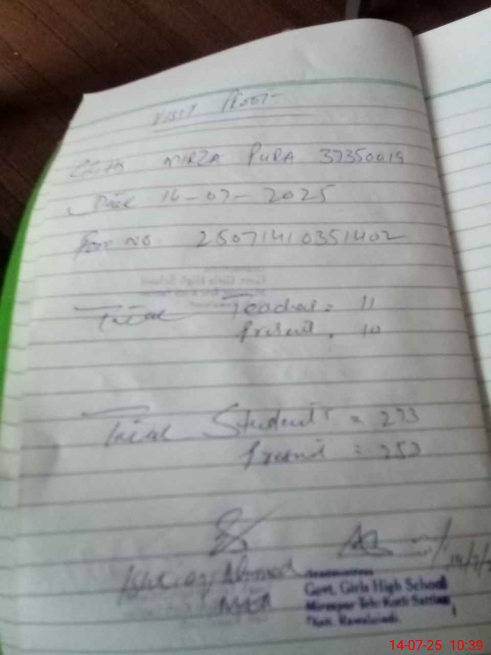 | EMIS Code: 37350019 | Name of School: GGHS MIRZA PUR | |||