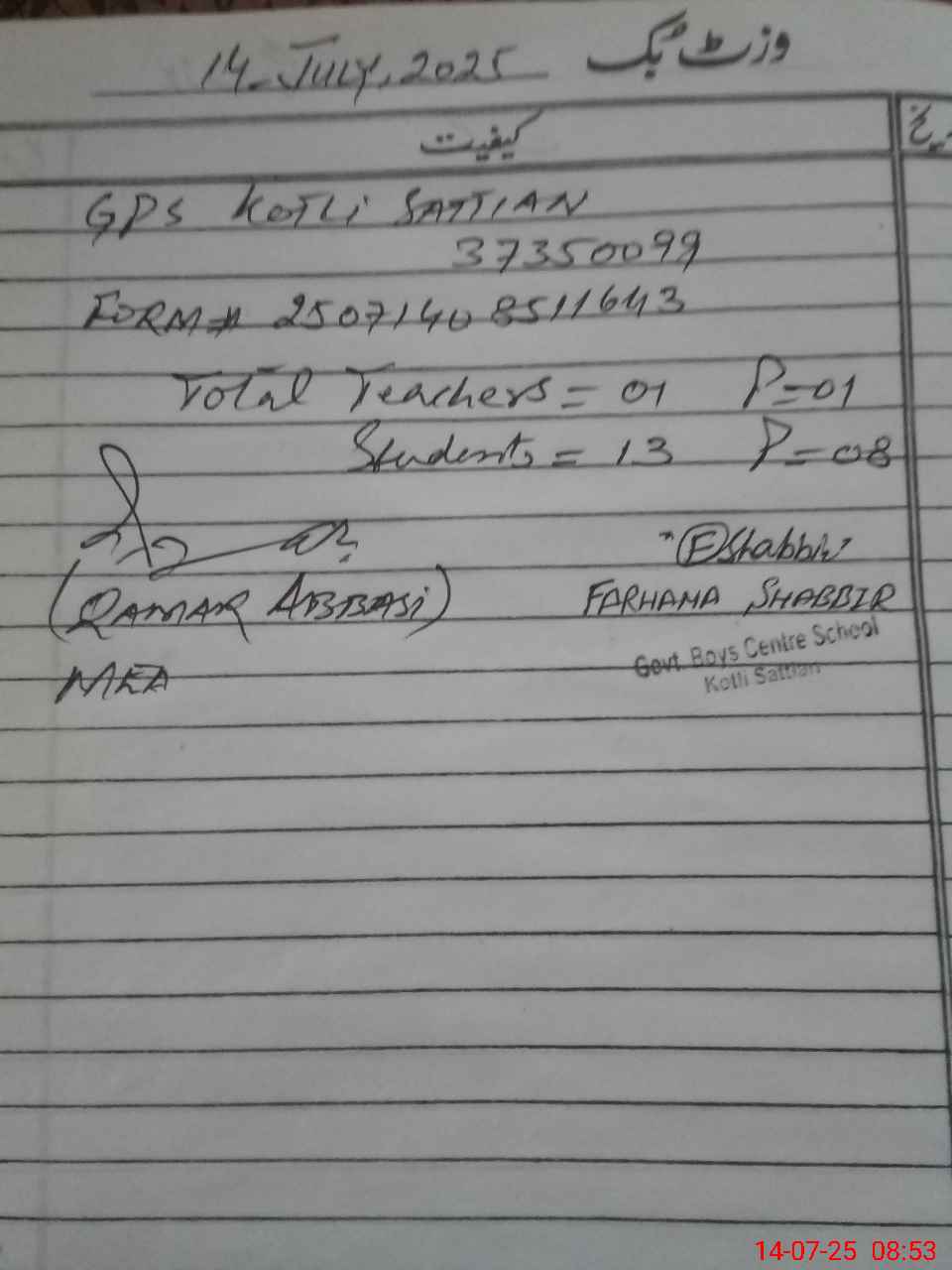 | EMIS Code: 37350099 | Name of School: GPS KOTLI SATTIAN | |||