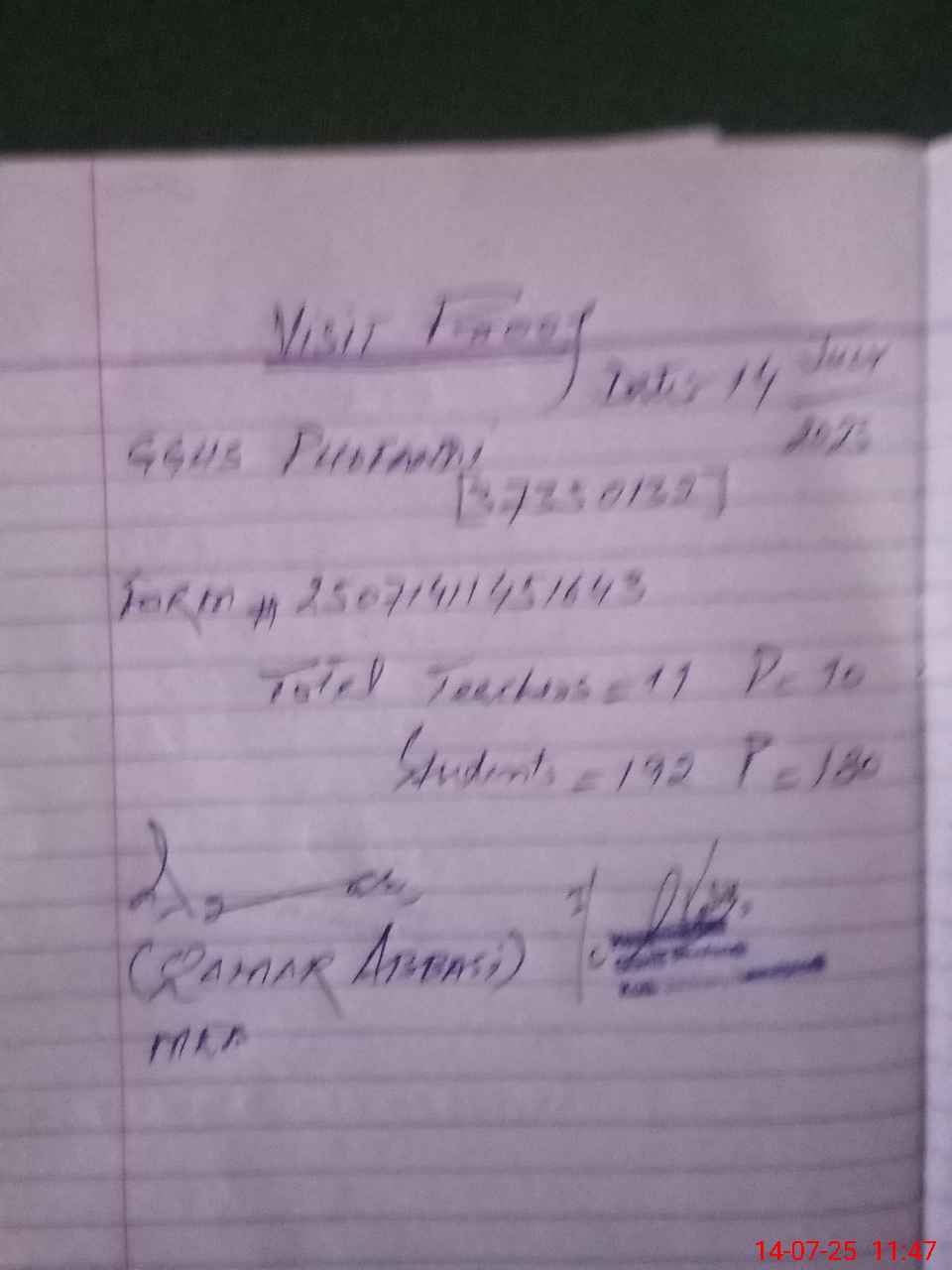 | Attendance Register | Head Teacher | MEA with School | Visit Proof |