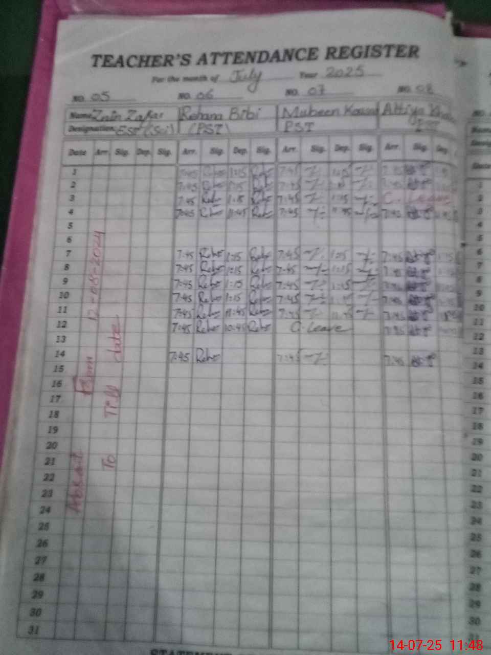 | 42**** | Za**** Za**** | EST | Regular | 0 | 0 | 0 | 0 | 0 | 0 | 0 | 0 | 0 | Absent (Un-Authorized) |
