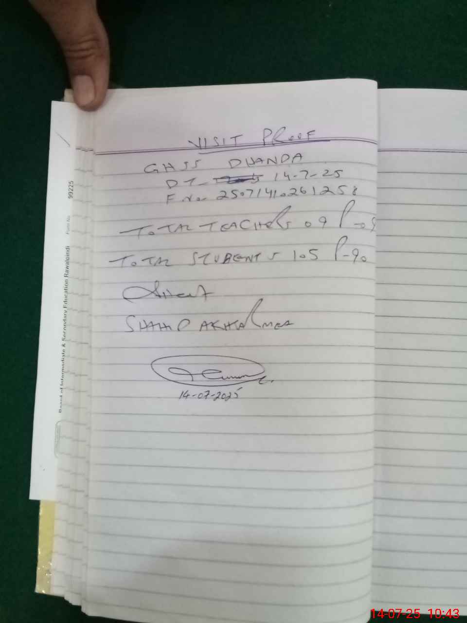 | Certified that this School was Inspected by the Undersigned MEA/DMO Today and the Information Stated Above is as Per Record. | |||||